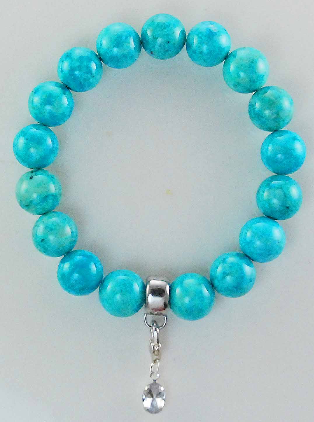 Barbary turquoise riverstone stretch bracelet size sm/med.  Crystal oval stone charm included with bracelet.