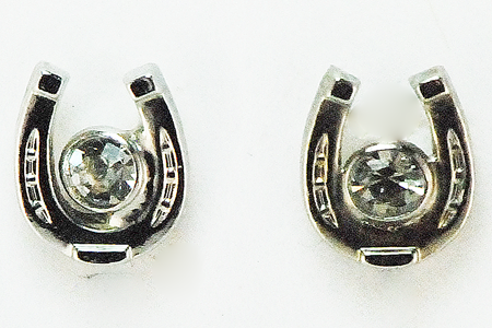 HORSE SHOE WITH BEZEL STONE EARRING-IMITATION RHODIUM FINISH