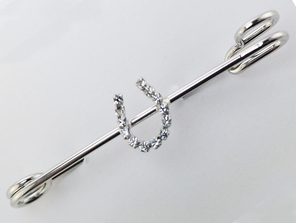 CRYSTAL RHINESTONE HORSESHOE ON LARGE STOCK PIN-IMITATION RHODIUM FINISH